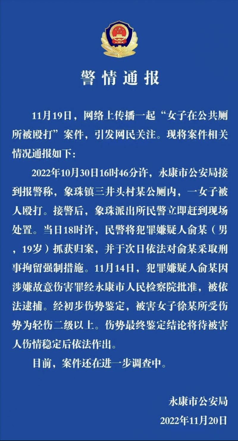11月16日,新京报记者获悉,三年前在公厕被殴打的浙江女孩小徐,近日被查出患有白血病。 2022年10月30日,家住浙江省永康市的19岁女孩小舒在公共浴室被同龄男子余某跟踪袭击。小徐身上多处受伤,但经确认伤势较轻。据媒体报道,殴打持续了20多分钟,导致小徐“鼻子和眼眶骨折”。事发前,小徐并不认识袭击者,只认识他。此事件当时受到广泛关注。小徐告诉新京报记者,经鉴定,凶手案发时并未患有任何精神疾病。他因过失杀人罪被判处两年零十一个月监禁,现已获释。突如其来的灾难给习近平造成了巨大的创伤傲树的身体和心灵。今年11月中旬,小旭刚刚开始重建生活,恢复正常的工作和社交生活,却被诊断出患有白血病,目前与母亲一起住院治疗。以下是北京报社记者与小舒的对话。 2022年11月,永康市公安局在小徐被殴打后发布通报。图/永康市公安局微博 受害人有后遗症 新京报:目前情况如何?小徐:前几天我被诊断出患有白血病。我目前正在等待骨髓检查的结果。下一步是根据结果制定化疗计划。这周我反复发烧,只好去医院打针退烧。我父亲患有肝病,母亲在医院照顾我。新京报:大家都很担心你被打后的情况。是每petrator,宇,精神病?他受到了应有的惩罚吗?小徐:永康警方核实身份后表示,于先生没有精神疾病。他被判犯有过失杀人罪,被判处两年零十一个月徒刑。目前他已出狱。我的评估结果是一级轻伤。据我了解,类似情况对于某的量刑是比较重的。新京报:当年的事件给你的身心造成了怎样的伤害?小徐:有后果。你经常会感到头晕、恶心,甚至可能会突然晕倒。也有。事件发生后两年左右,他无法像往常一样工作,只能在家休息,除了定期去医院就诊。我唯一能做的就是保持简单的生活并照顾好自己。脸上和手上有一些浅表划痕。袭击发生后,我被诊断出患有严重抑郁症和严重焦虑症作为轻度认知障碍。我养着两只兔子,告诉自己这里还剩下两条小生命。只有等他们好起来我才能照顾他们,所以这对我来说是一种希望和寄托。新京报:再治疗费用谁支付?小徐:我的医药费是由你付的,我也付了一些。事件发生后,他的父母关闭了他们的小超市,不再营业。我的父亲患有肝硬化,无法工作。他靠母亲到处打零工赚钱养家。恢复正常生活两个月后,我被诊断出患有白血病。新京报:什么时候开始恢复正常生活?小徐:今年1月份哇,掉下来的种植牙竟然愈合了。当我受伤的时候,我只能剪掉头发来治愈伤口,但现在我的头发又长出来了。 ,面部瑕疵可以用稍微浓烈的遮瑕膏来隐藏,即使在高光下也不会明显。失去。虽然他还有几部续集,但从外表上看他就像一个正常人。然后我用了大半年的时间给自己做心理准备,告诉自己一定要去工作,去赚钱。不然的话,我妈一个人挣钱养家是很困难的。然而,找工作对我来说并不容易。我已经脱离社交太久了。我特别害怕与人相处,没有勇气和别人说话。我花了一个多月才找到工作。我是九月底找到工作的。我是台球馆主持人,在抖音上卖台球团购券,宣传台球。台球室亮了。我很高兴。我和同事相处得比较融洽。我结交了新朋友,感觉我的生活恢复了正常。新京报:您是怎么被诊断出患有白血病的?小徐:上个月,我无缘无故感觉全身很热。当我换衣服的时候es,我到处出汗。我认为这是焦虑的身体症状。 11月12日,我因鼻子流血很多,而且止不住而去医院。经过几次转诊后,我去看了血液科医生,医生告诉我我患有白血病。我无法接受,我很难过。上次我活了下来并且努力工作。正当我以为我可以重新开始生活时,我被告知我可能活不下去了。如果不起作用怎么办?新京报:下一步有什么计划?小徐:自从媒体报道之后,很多好心人都给我捐了钱,让我可以支持一段时间的治疗。 TaI也将尽一切努力战胜这些疾病。新京报记者刘思伟、编辑刘谦、编辑贾宁